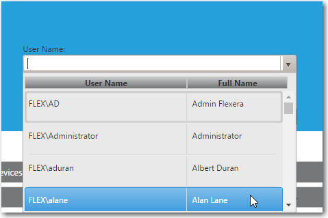 Switching to a different user of the same device—If no user is assigned to the computer or if you want to select a different assigned user, click the user icon in the Action column. A user name selection dialog box opens.